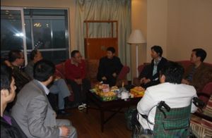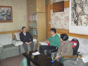 翟雁,劉國強與蘭州興邦文化服務(wù)中心主任擺生義在辦公室交談