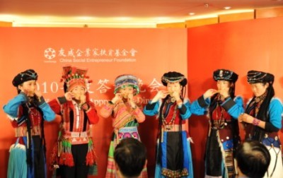 新公益的理念感召了當(dāng)代諸多的志士仁人共襄盛舉,也感召了新公益的受益者——西南兄弟民族的民間藝術(shù)家競(jìng)相獻(xiàn)藝。美麗的苗族姑娘獻(xiàn)上獨(dú)具風(fēng)情的原生態(tài)歌舞表演,一時(shí)弦歌繞梁,可謂盛世氣象。
