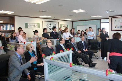 中午十二點(diǎn),所有在“家”的友成人和前來出席普融董事會的董事們都聚集到2502辦公室,出差在外和駐扎在各地驛站的友成同仁和志愿者也接通了網(wǎng)絡(luò)視頻守候在一起。