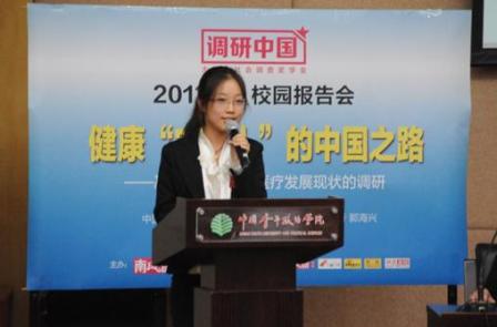 2012年10月17日,由《南風(fēng)窗》雜志社與友成基金會共同主辦的2012“調(diào)研中國──大學(xué)生社會調(diào)查獎學(xué)金”項(xiàng)目校園報(bào)告會之中國青年政治學(xué)院報(bào)告會在該校小階梯教室舉行。本場報(bào)告會的主題為《健康“守門人”的中國之路——基于北京市全科醫(yī)療發(fā)展現(xiàn)狀的調(diào)研》。