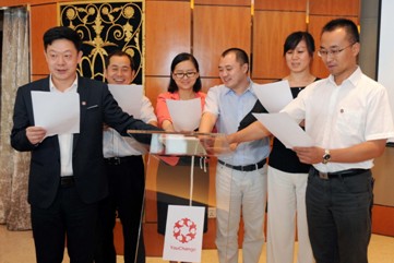 最后,經(jīng)過(guò)6月份競(jìng)聘上崗的友成部門(mén)負(fù)責(zé)人進(jìn)行了就職宣誓,以公益的名義,向理事會(huì)鄭重承諾:恪守職業(yè)操守、履行公益使命。為理事會(huì)劃上圓滿(mǎn)句號(hào)。