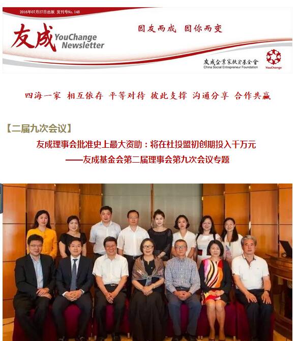 Newsletter第148期:友成理事會(huì)批準(zhǔn)史上最大資助:將在社投盟初創(chuàng)期投入千萬元 ——友成第二屆理事會(huì)第九次會(huì)議專題