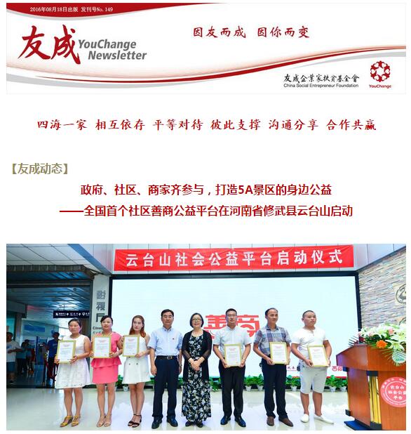 Newsletter第149期:政府、社區(qū)、商家齊參與,打造5A景區(qū)的身邊公益 ——全國(guó)首個(gè)社區(qū)善商公益平臺(tái)在河南省修武縣云臺(tái)山啟動(dòng)