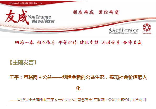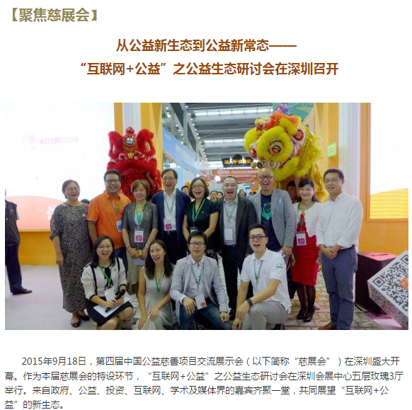 Newsletter第139期:【聚焦慈展會(huì)】 互聯(lián)網(wǎng)+公益:創(chuàng)造全新的公益生態(tài),實(shí)現(xiàn)社會(huì)價(jià)值最大化。