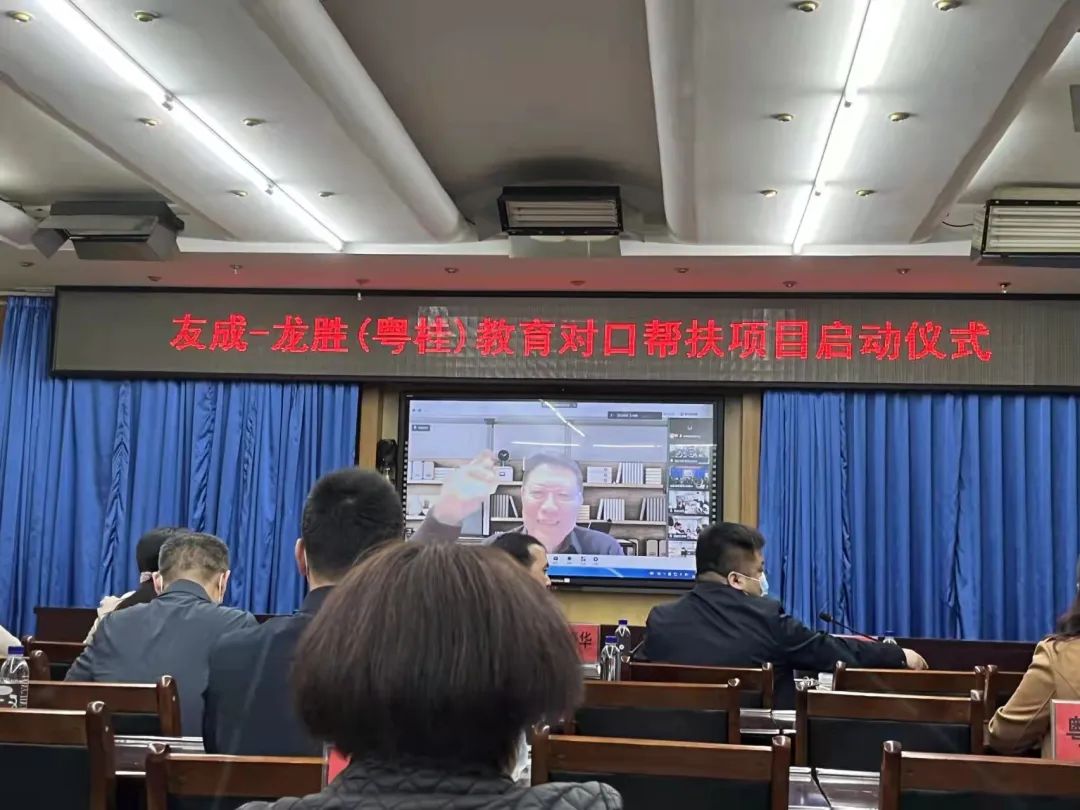 2022年3月18日,友成基金會(huì)自主研發(fā)的縣域教育綜合改善項(xiàng)目“山橋計(jì)劃”:友成—龍勝(粵桂)教育對口幫扶項(xiàng)目啟動(dòng)儀式在廣西桂林市龍勝縣教育局隆重舉行。國務(wù)院參事、友成企業(yè)家扶貧基金會(huì)副理事長湯敏(在線),龍勝縣委常委、副縣長周曉華,友成基金會(huì)副秘書長李佳琛,龍勝縣教育局局長蒲慶鋒、副局長吳松菊等領(lǐng)導(dǎo),各學(xué)校代表及友成駐地團(tuán)隊(duì)共同出席項(xiàng)目啟動(dòng)儀式。