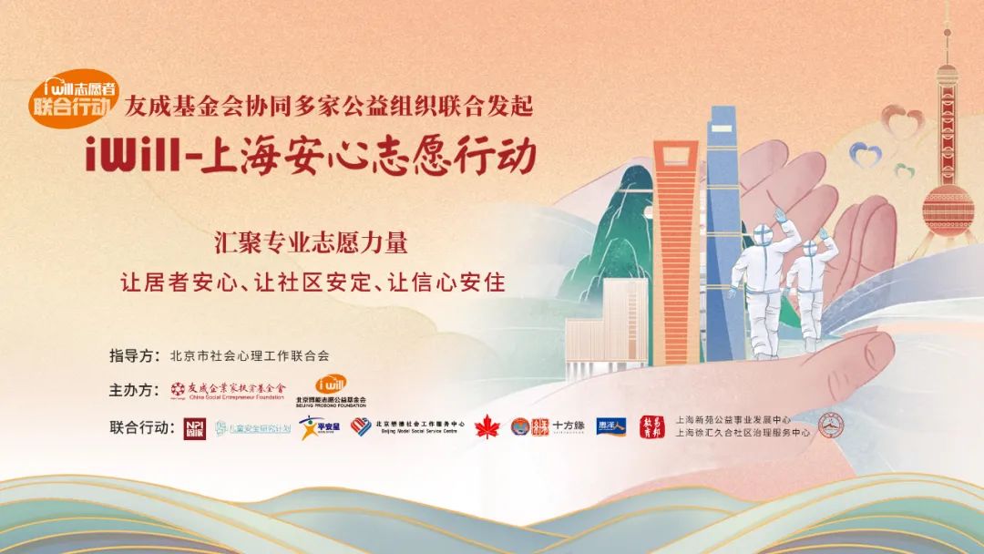 “iWill志愿者聯(lián)合行動(dòng)-上海安心志愿行動(dòng)”(簡(jiǎn)稱“iWill上海安心行動(dòng)”)由北京市社會(huì)心理工作聯(lián)合會(huì)指導(dǎo),友成企業(yè)家扶貧基金會(huì)牽頭聯(lián)合北京博能志愿公益基金會(huì)、北京惠澤人公益發(fā)展中心、北京市恩派非營(yíng)利組織發(fā)展中心、上海浦東新區(qū)恩派公益基金會(huì)、中國(guó)應(yīng)急管理學(xué)會(huì)兒童安全研究計(jì)劃、北京東城區(qū)平安星減防災(zāi)教育中心、北京紅楓婦女心理咨詢服務(wù)中心,北京懋德社會(huì)工作服務(wù)中心、中國(guó)生命關(guān)懷協(xié)會(huì)心靈呵護(hù)工作委員會(huì)、上海新苑公益事業(yè)發(fā)展中心、上海徐匯久合社區(qū)治理服務(wù)中心、母愛書院、易邦教育聯(lián)合機(jī)構(gòu)等公益機(jī)構(gòu)共同發(fā)起的抗疫志愿行動(dòng)。該行動(dòng)匯聚專業(yè)志愿的力量,運(yùn)用三線三師模式云上馳援上海,有效響應(yīng)在特殊時(shí)期人們的社會(huì)心理特殊需求,成為促進(jìn)心理秩序、社區(qū)秩序和社會(huì)秩序建設(shè)的積極力量。