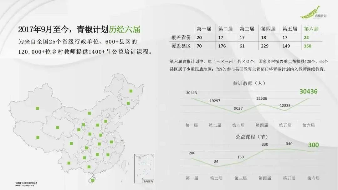 在報(bào)名縣區(qū)中,國(guó)家鄉(xiāng)村振興重點(diǎn)幫扶縣128個(gè),屬原“三區(qū)三州”的縣區(qū)31個(gè),63個(gè)縣區(qū)屬于少數(shù)民族地區(qū)。最后,苗青還介紹了本屆青椒計(jì)劃的課程安排、助教團(tuán),并感謝了項(xiàng)目合作伙伴的大力支持。