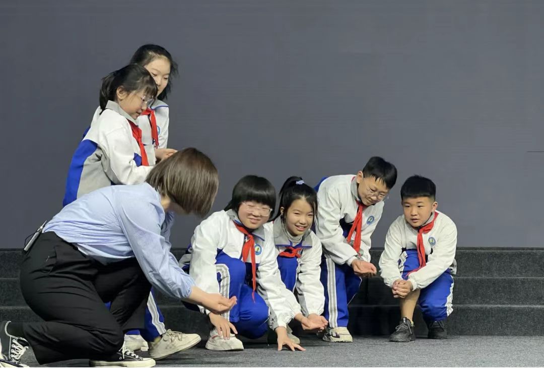 “深呼吸,呼~吸~”由楊宇任教的益教室戲劇公開課,在幾十個孩子一呼一吸的帶入環(huán)節(jié)中輕松展開,沒有兩縣師生第一次教學(xué)帶來的絲毫陌生感,孩子們在老師的引導(dǎo)中快速進(jìn)入到平生的第一堂戲劇課的情境中,第一次體驗(yàn)肢體模仿、第一次感受角色、第一次體驗(yàn)表演,短短的50分鐘課程,孩子們用肢體、用語言感受和表達(dá),讓每個孩子都回到了孩子本來的樣子!