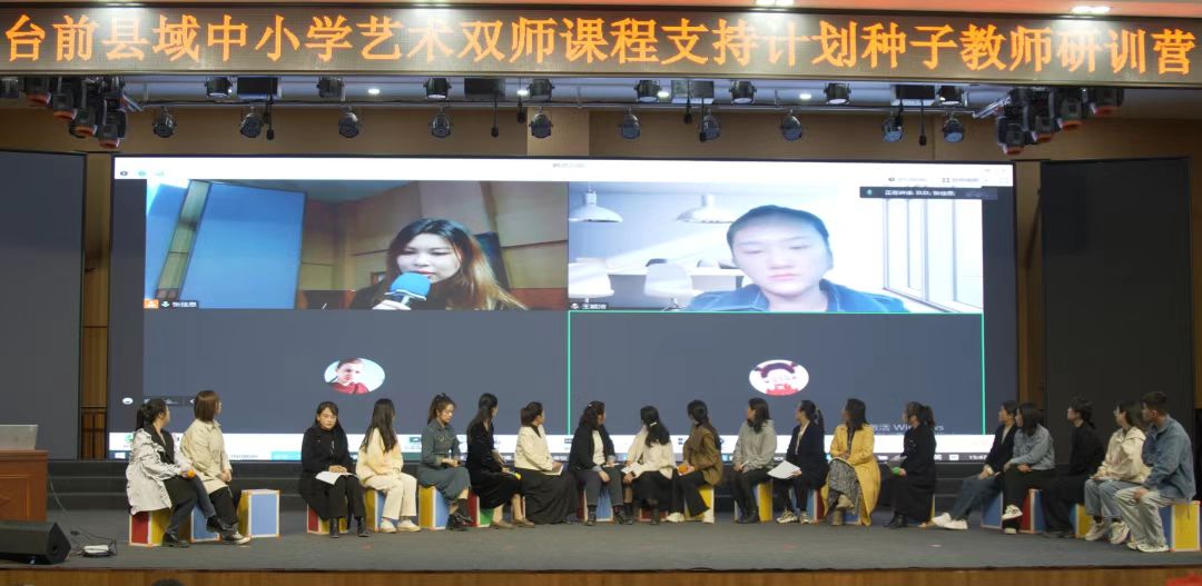 在過去的一年中,益教室雙師課程在5個項(xiàng)目縣實(shí)施落地,在為縣域中小學(xué)藝術(shù)美育教師賦能的同時(shí),為縣域中小學(xué)開齊開足開好藝術(shù)課程提供了有效的支持。在此次研訓(xùn)營活動中,來自臺前縣和富寧縣的項(xiàng)目種子教師,分享了各自在雙師課程教學(xué)應(yīng)用過程中的感受和體會,并介紹了縣域教師應(yīng)用雙師課程模式開展教研的案例,從教學(xué)到教研,縣域種子教師從藝術(shù)雙師課程的“使用者”,逐漸成為雙師課程的“生產(chǎn)者”,為縣域藝術(shù)教師自我造血、互助成長及縣域藝術(shù)美育持續(xù)發(fā)展路徑,進(jìn)行了有益的探索。