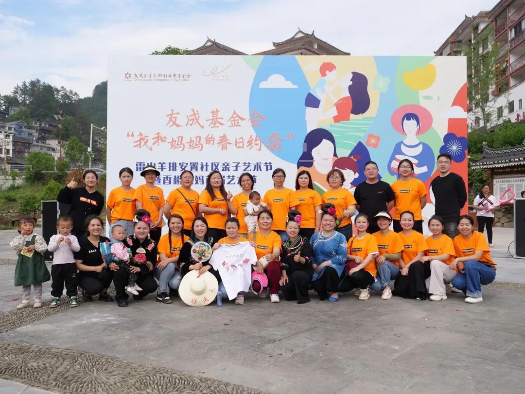 在雷山,留守安置區(qū)的絕大多數(shù)為女性,她們既要承擔(dān)照顧家庭的責(zé)任,又要尋求一份合適的工作貼補(bǔ)家用。就業(yè)幫扶車間的創(chuàng)辦為媽媽們提供了就地就近就業(yè)的崗位,為社區(qū)留守婦女解決了生計(jì)難題。但與此同時,媽媽們卻無法兼顧陪伴孩子成長的全過程。2023年母親節(jié),友成基金會決定在這個春深夏淺的五月與雷山安置區(qū)的群眾來一場春日約會,通過豐富多彩的互動活動為家長和孩子搭建一個溝通交往的平臺,提升鄉(xiāng)村母親正確處理親子關(guān)系的能力,讓家庭教育觀念在搬遷安置區(qū)生根發(fā)芽。
