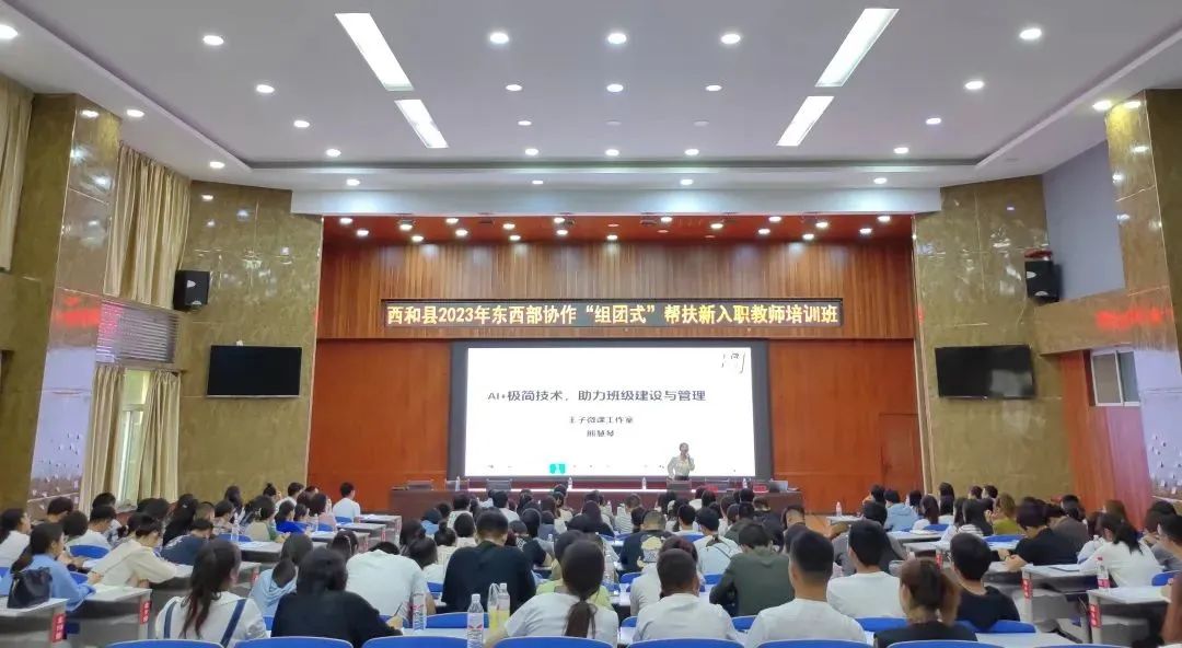 本次培訓(xùn)根據(jù)西和縣實(shí)際需求,旨在為新教師解決現(xiàn)實(shí)困難,引進(jìn)優(yōu)質(zhì)教育資源,從“強(qiáng)師、優(yōu)課、育人”三個(gè)維度,通過(guò)“AI助教”“AI助研”“AI助學(xué)”“AI助管”四個(gè)視角,開(kāi)展“AI+教育”學(xué)習(xí)型社會(huì)的實(shí)踐,賦能新入職教師。特邀講師張曉軍和熊慧琴將AI技術(shù)與教育教學(xué)融合,在班級(jí)建設(shè)與管理、課堂互動(dòng)教學(xué)、教育科學(xué)研究、項(xiàng)目式學(xué)習(xí)、微課設(shè)計(jì)等方面,為新教師提供一套完整的教學(xué)解決方案,上好職業(yè)生涯“第一堂課”。