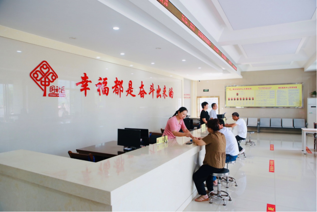 天子路社區(qū)便民服務(wù)中心工作人員正在幫當(dāng)?shù)鼐用褶k理業(yè)務(wù)