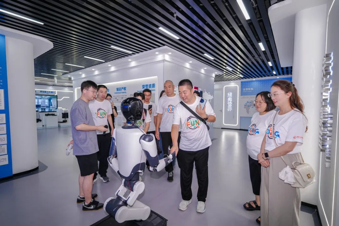 理論學(xué)習(xí)后,是充滿趣味的互動(dòng)環(huán)節(jié)。老師們興奮地與現(xiàn)場(chǎng)的人形機(jī)器人和協(xié)作機(jī)器人互動(dòng)起來。他們向人形機(jī)器人發(fā)出“握手、打招呼、坐下”等指令,看著機(jī)器人精準(zhǔn)或偶爾笨拙地執(zhí)行。當(dāng)機(jī)器人偶有失靈,不聽指令時(shí),老師們的笑聲中帶著會(huì)心:“看,它也有‘bug’,跟我們寫代碼時(shí)一樣!” 這小小的插曲不僅拉近了人與機(jī)器的距離,讓技術(shù)瞬間變得親切無比。