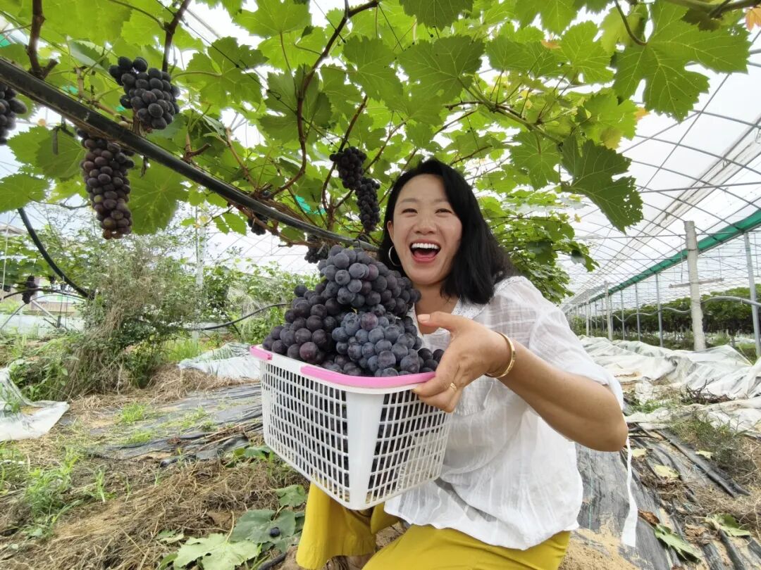 從此,她轉(zhuǎn)型家庭農(nóng)場(chǎng),開(kāi)發(fā)采摘、烤全羊等體驗(yàn)項(xiàng)目。為改良沙地,她請(qǐng)教專(zhuān)家,將羊糞經(jīng)三個(gè)月發(fā)酵滅菌制成有機(jī)肥,替代化肥;用太陽(yáng)能燈、黃藍(lán)粘板物理防蟲(chóng);種出的夏黑、陽(yáng)光玫瑰獲綠色食品認(rèn)證。