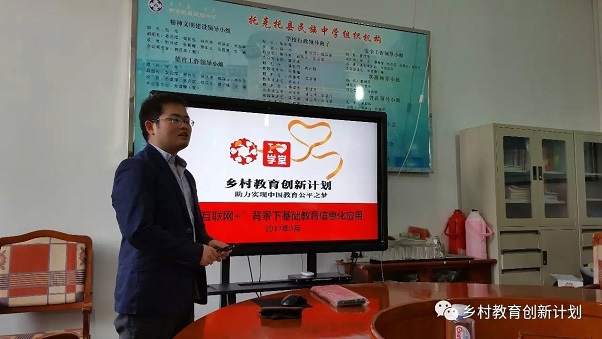 每個(gè)縣分別選擇一所小學(xué)和一所中學(xué)作為實(shí)驗(yàn)校,首先進(jìn)行的是信息化理念和認(rèn)知的培訓(xùn),友成常青基金高級(jí)項(xiàng)目官員甘琦為領(lǐng)導(dǎo)和老師們系統(tǒng)的介紹了“常青義教”、“雙師教學(xué)”和“鄉(xiāng)村教育創(chuàng)新計(jì)劃”。甘琦表示,鄉(xiāng)村教育創(chuàng)新計(jì)劃的目的,就是在于將友成基金會(huì)多年來在教育領(lǐng)域,尤其是在常青義教和雙師教學(xué)項(xiàng)目中積累的農(nóng)村教育項(xiàng)目運(yùn)營經(jīng)驗(yàn),與愛學(xué)堂的優(yōu)質(zhì)資源結(jié)合起來,為鄉(xiāng)村學(xué)校的學(xué)生提供更好的教學(xué)內(nèi)容,創(chuàng)造更好的教學(xué)體驗(yàn)。
