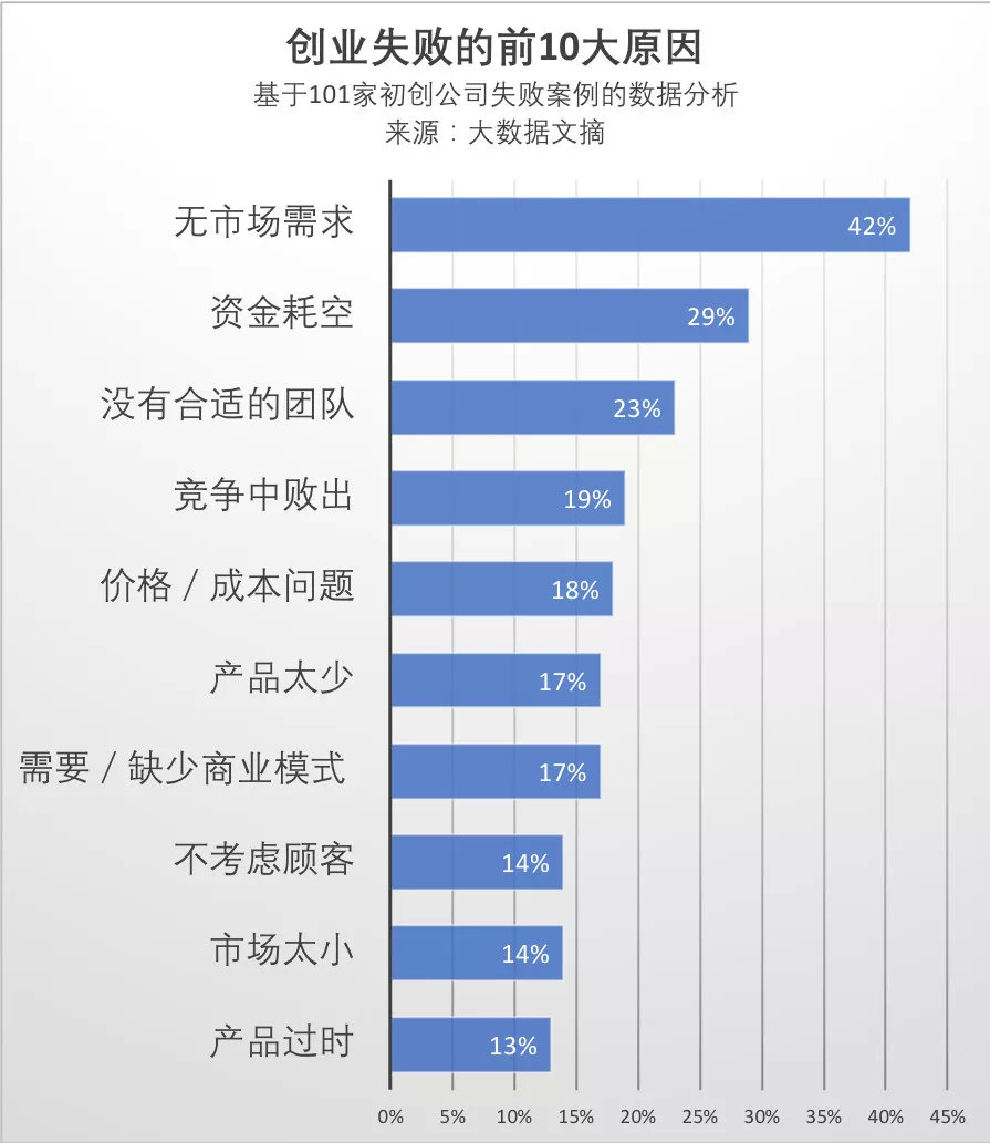 很多企業(yè)沒有在關鍵的時候建立起運營的體系,或錯失市場最佳時機,或耗盡資金,或拖沒了團隊的信心。90%初創(chuàng)公司的失敗原因都集中在產(chǎn)品、營銷、融資、團隊和戰(zhàn)略問題上。