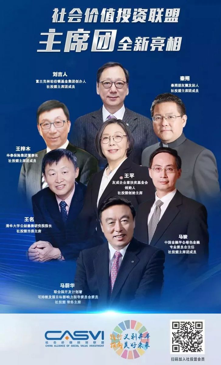 2019年1月12日在北京召開的社投盟第一屆理事會第十次會議審議通過,成立社會價(jià)值投資聯(lián)盟(深圳)主席團(tuán)(以下簡稱“社投盟主席團(tuán)”),馬蔚華擔(dān)任社投盟主席團(tuán)常務(wù)主席,創(chuàng)始主席王平、2019年當(dāng)值主席王名為主席團(tuán)創(chuàng)始成員。