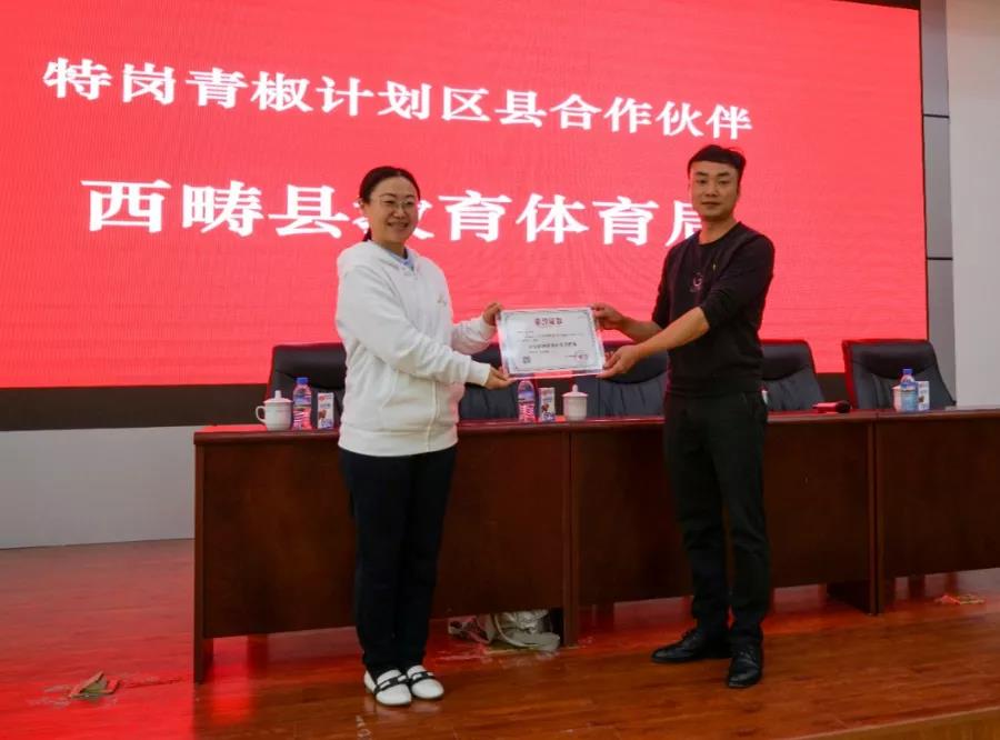 隨后,苗青老師在現(xiàn)場授予西疇縣教體局特崗青椒計劃合作區(qū)縣牌匾,并向教體局田磊主任頒發(fā)青椒優(yōu)秀管理員證書,為優(yōu)秀學(xué)員頒發(fā)榮譽獎品,她希望西疇縣新一屆青椒能夠向他們學(xué)習(xí),也期待西疇縣培育出更多優(yōu)秀教師。