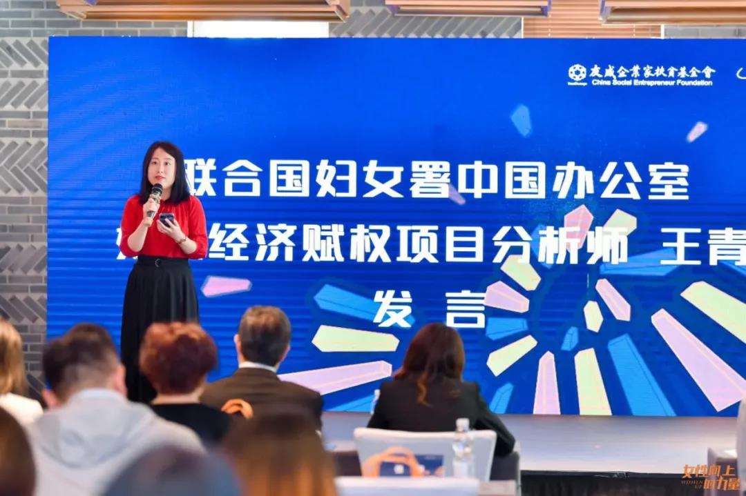 聯(lián)合國婦女署中國辦公室婦女經(jīng)濟賦權(quán)項目分析師王青發(fā)言