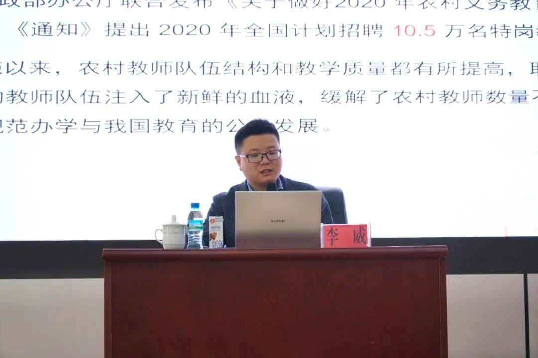 本次特崗青椒計劃西疇線下培訓交流會邀請中國教育科學研究院教師發(fā)展研究所博士后李威老師,做題為《如何提高特崗教師專業(yè)發(fā)展水平》的培訓。
