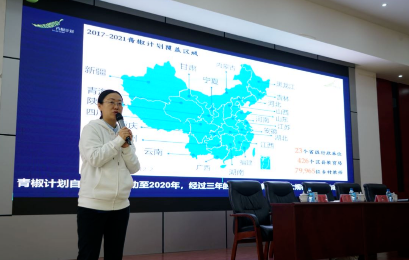 友成基金會副秘書長苗青從鄉(xiāng)村教育現(xiàn)狀、友成教育公益項目行動方法、未來發(fā)展等方面詳細闡述了友成對鄉(xiāng)村教育的研究與實踐,講述了友成通過跨界聯(lián)合,利用科技工具,促進優(yōu)質(zhì)教育資源共享,推動鄉(xiāng)村教育向前發(fā)展的故事。同時,苗老師非??隙ㄎ鳟牽h教體局在特崗青椒計劃中的組織、引導工作,使培訓成果的效果非常好地顯現(xiàn)。