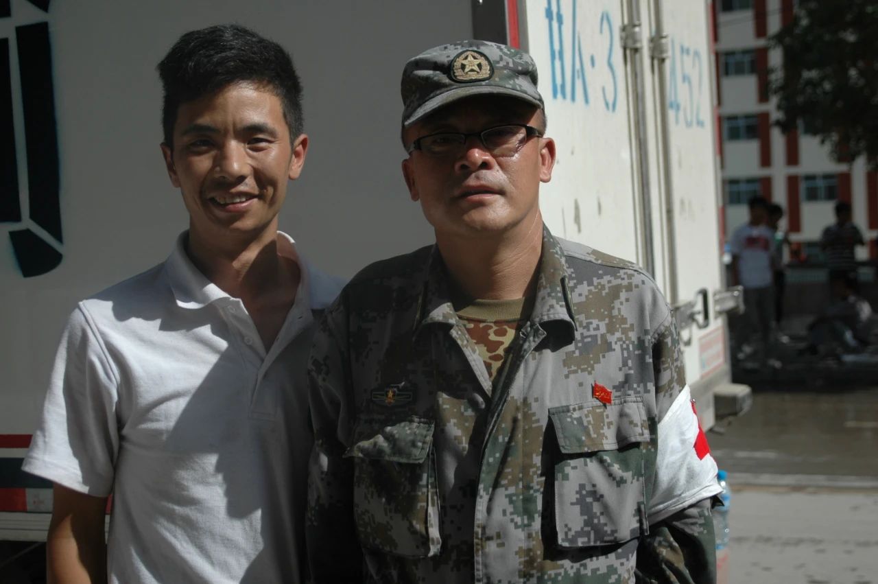 2010年舟曲救災(zāi)中,前來領(lǐng)取物資的邱少云部隊(duì)衛(wèi)生所蘭所長對(duì)劉寶宗說:你給咱邱少云部隊(duì)爭光了!以上是兩位戰(zhàn)士的合影。