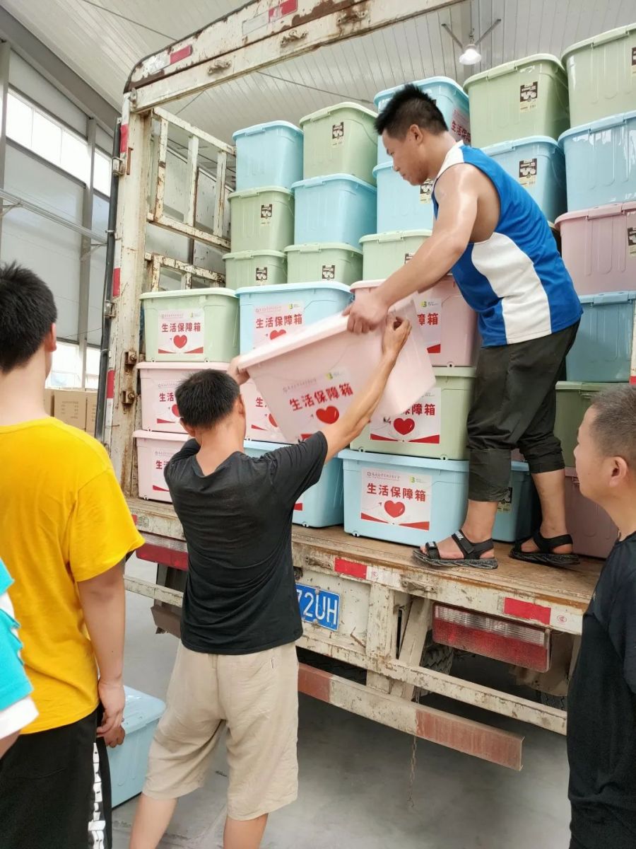 志愿者在搬運(yùn)友成救災(zāi)物資