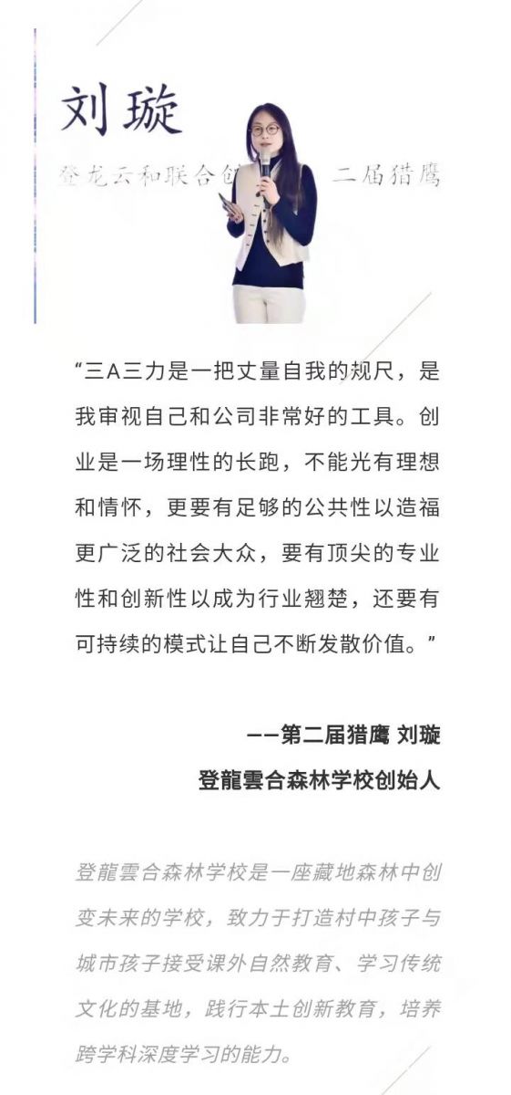 Power Solution創(chuàng)始人李霞和登龍雲(yún)合森林學(xué)校創(chuàng)始人劉璇被給予“獵鷹企業(yè)家”稱(chēng)號(hào)。