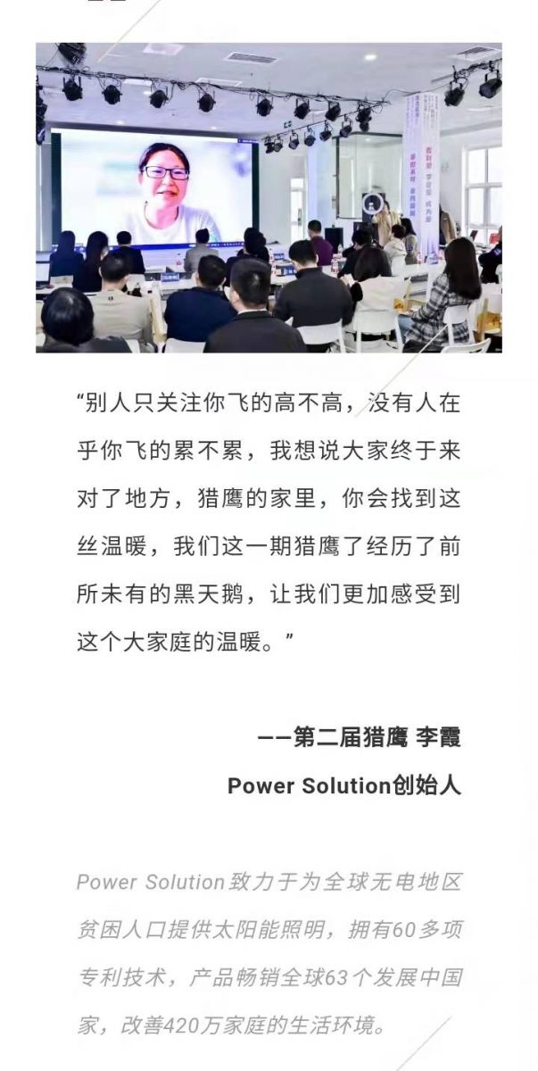 新獵鷹的分享不乏對(duì)創(chuàng)業(yè)之路、人生經(jīng)歷的思考,也包含著對(duì)開(kāi)啟獵鷹之旅的熱切期待。