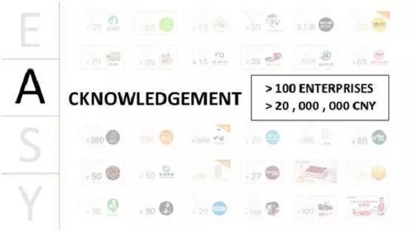 在路人甲公益我們創(chuàng)造了一個模式,“A”就是“acknowledgement”,在平臺上捐10塊錢,你可以換一張優(yōu)惠券,這個優(yōu)惠券可以去更多的場合進行消費。大家可以看到這些優(yōu)惠券本身的價值都遠遠超過了10塊錢。我們現(xiàn)在有超過100家的企業(yè)給了我們超過2000萬人民幣的資源,每一個優(yōu)惠券都是對捐款人的一次鼓勵,當拿到優(yōu)惠券的時候,他們會非常樂意去消費,這個消費體驗是非常好的。