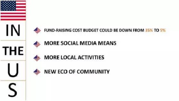 為此,我也做了一些研究??墒墙Y果我嚇了一跳。在中國,每年只有不到2%的人能夠通過捐款來參與公益。可能美國同學對這個數(shù)字不是非常有概念。那我們換個角度說明一下,如果美國慈善組織每年的個人捐款減少55倍,小額捐款減少465倍,那美國的慈善公益事業(yè)將面臨什么樣的困境。
