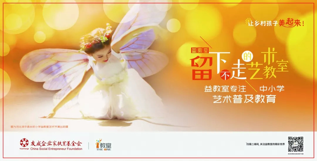 美育是培養(yǎng)孩子德、智、體、美、勞全面發(fā)展不可缺少的組成部分,學(xué)校藝術(shù)教育是美育的主要途徑。友成企業(yè)家扶貧基金會(huì)于2015年起孵化支持的“益教室”鄉(xiāng)村中小學(xué)藝術(shù)教育項(xiàng)目,通過(guò)培養(yǎng)學(xué)生的審美感受能力和審美表達(dá)能力,幫助學(xué)生樹(shù)立完整、自信的人格。益教室目前已覆蓋全國(guó)500多所學(xué)校,約21萬(wàn)名學(xué)生受益。