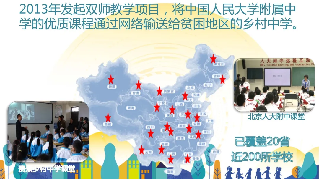 通過互聯(lián)網(wǎng),學(xué)生們在課堂上有兩個老師, 一個是遠(yuǎn)程的人大附中的老師講課,一個是當(dāng)?shù)乩蠋煱芽噩F(xiàn)實課堂,兩個老師協(xié)作把課講好, 這就是雙師教學(xué)。我們在全國20個省的200個學(xué)校進(jìn)行實驗,一開始學(xué)生有點(diǎn)不適應(yīng),但是很快他們就跟上了人大附中的節(jié)奏。三年以后,這些學(xué)生成績提升了很多,而且他們整個的學(xué)習(xí)模式、學(xué)習(xí)自信心和學(xué)習(xí)積極性都有很大的改善?,F(xiàn)在雙師教學(xué)在很多地方都得到了推廣。今天的“停課不停學(xué)”實際上也可以采用這種方式。