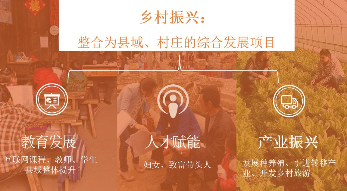 在鄉(xiāng)村振興事業(yè)里,我們主要也將在教育,在人才,在產(chǎn)業(yè)這三大領(lǐng)域繼續(xù)發(fā)力。在這三個領(lǐng)域里,十四年來我們都做了不少的工作,現(xiàn)在正是要大規(guī)模推廣這十四年積累的經(jīng)驗,把這些經(jīng)驗跟企業(yè)、跟政府有關(guān)部門一起來推廣的時候。